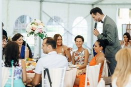 Если Вы не хотите ломать голову над тем, как развлекать многочисленных гостей во время банкета, то Вам необходим профессиональный тамада на свадьбу. Такой человек способен развеселить любую публику! На нашем портале представлены портфолио свадебных ведущих Вашего города. Страница каждого ведущего дополнена контактными данными, описанием услуг, фотографиями с проведённых праздников. Также Вы сможете найти отзывы других молодожёнов о работе того или иного свадебного ведущего.